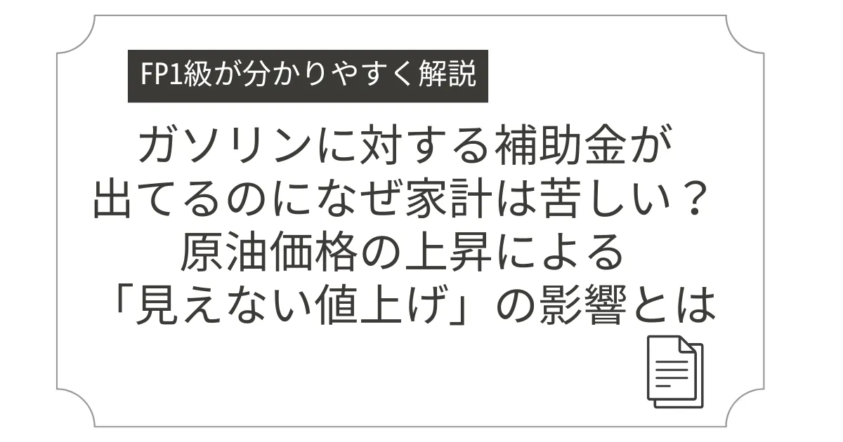 新着記事News ガソリンに対する補助金が出てるのになぜ家計は苦しい?原油価格の上昇による「見えない値上げ」の影響とは 2026.04.14 社会ニュース×家計 社会ニュース×家計 人気記事Popular Post はなおばちゃんサイト管理者Profileアラフィフでフリーランス営業職から 未経験・無資格で介護士に転職 51歳で介護福祉士資格取得 現在勤めている特別養護老人ホームへ 正職員として転職、介護士6年目です 小さく愉しく暮らしています ファイナンシャルプランニング技能士2級資格取得 証券外務員二種資格取得プロフィールを読む